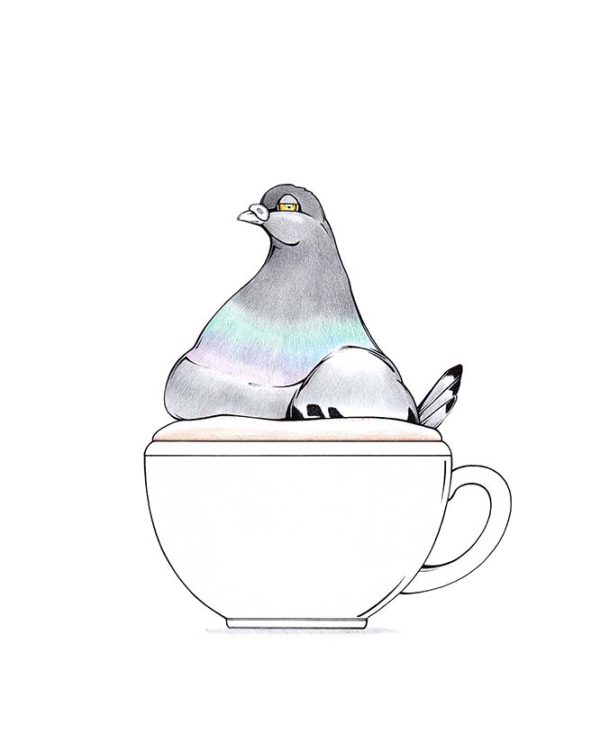 Diese Taube ist ein handgefertigtes Original. Es wurde mit Bleistift skizziert und mit Tusche- und Buntstiften auf 185 g/m²-Papier gezeichnet. Das Blatt ist rückseitig signiert und datiert. Eingefasst ist die Arbeit in ein Passepartout, das mit dem Titel des Bildes („Cappiccione“) beschriftet ist. Ein schwarzer Rahmen der Größe 30 x 40 cm aus FSC-zertifiziertem Holz ist im Preis inbegriffen.